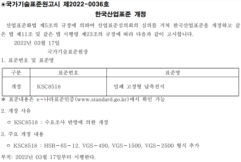 [KS고시] 국가표준 개정 고시(제2022-0036호)